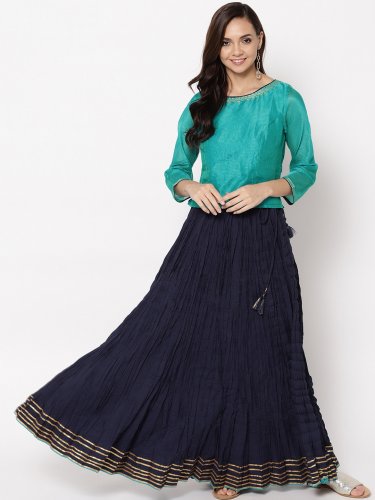 Crop Top Lehenga Myntra - Red color lehenga with top for party wear.